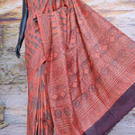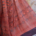 Each saree is unique, and has been handcrafted with utmost precision - meaning, there will never be a repeat of the same piece from our side! This time, we have incorporated the contemporary styles of Ajrakh with gorgeous traditional motifs in order to show you the evolution of Ajrakh over the years, and display the harmony between old and new. All sarees focus on this harmony, that you can see in the body or the Pallu - where traditional delicate blocks have been placed with modern bold blocks. Made with natural dyes, you can see the difference in colours due to the fabric of choice.