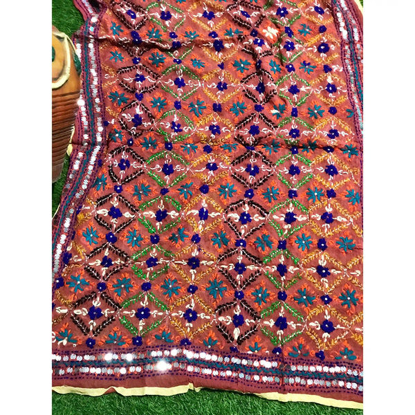 Rust Georgette Phulkari Hand Embroidered Dupatta