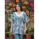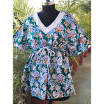 Sea Green Batik Copper Block Print Designer Short Kaftan