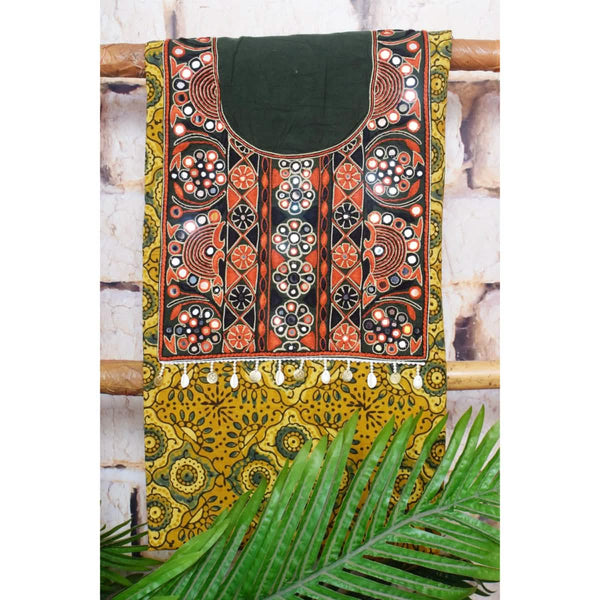 Yellow Ajrakh Block Print Kutch Kurti Fabric