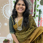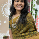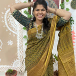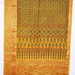 Yellow Ajrakh Cotton Silk Saree with Zari