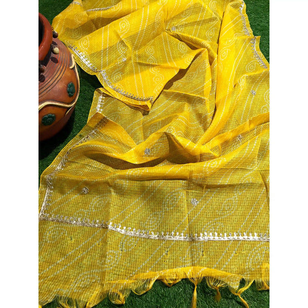 Yellow Bandhani Kota Dupatta with Gota Patti