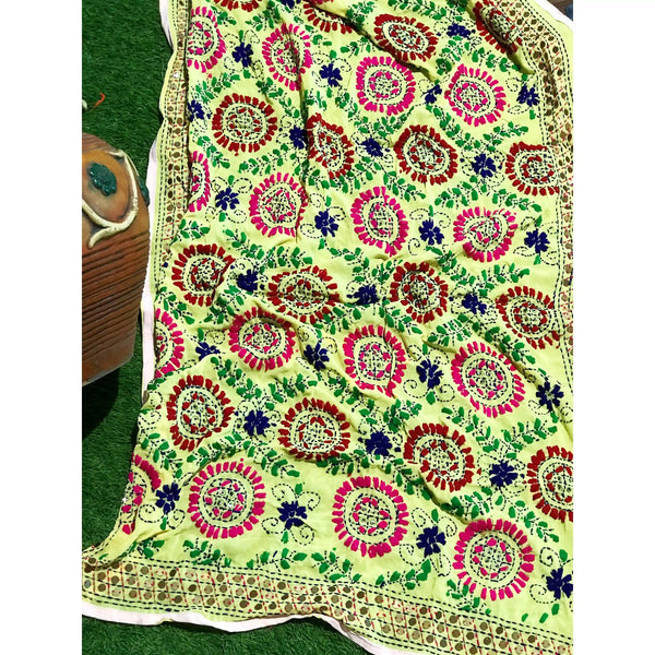 Yellow Georgette Phulkari Hand Embroidered Dupatta